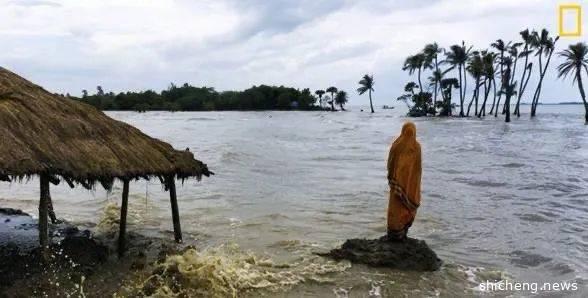 印度西孟加拉(West Bengal)地区的恒河三角洲某村镇,由于气候变暖导致海平面上升,该地会逐渐被大水吞掉,而且因此造成的“气候难民”会越来越多。