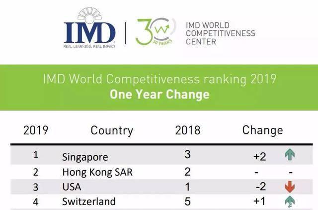 瑞士洛桑国际管理发展学院(IMD)发布了《2019年世界竞争力年鉴》,新加坡取代美国,成为全球最具竞争力的经济体。