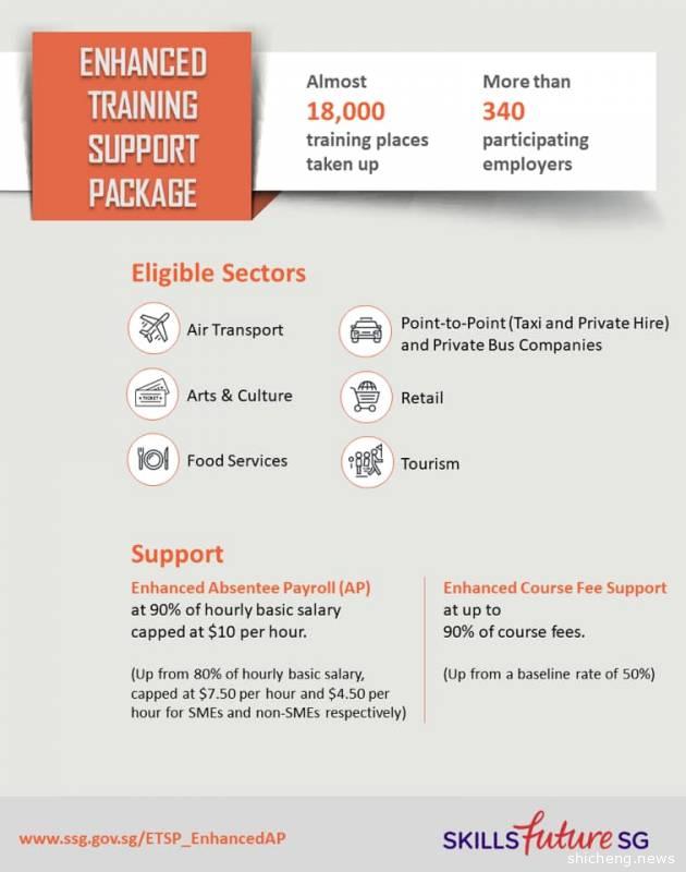 新加坡贸工部兼教育部高级政务部长徐芳达在社交网站Facebook发布贴文表示,在新加坡多个部门机构共同推出升级版的培训援助配套下,迄今为止,已有340多家企业受惠,将近1万8000个学额已经填满。
