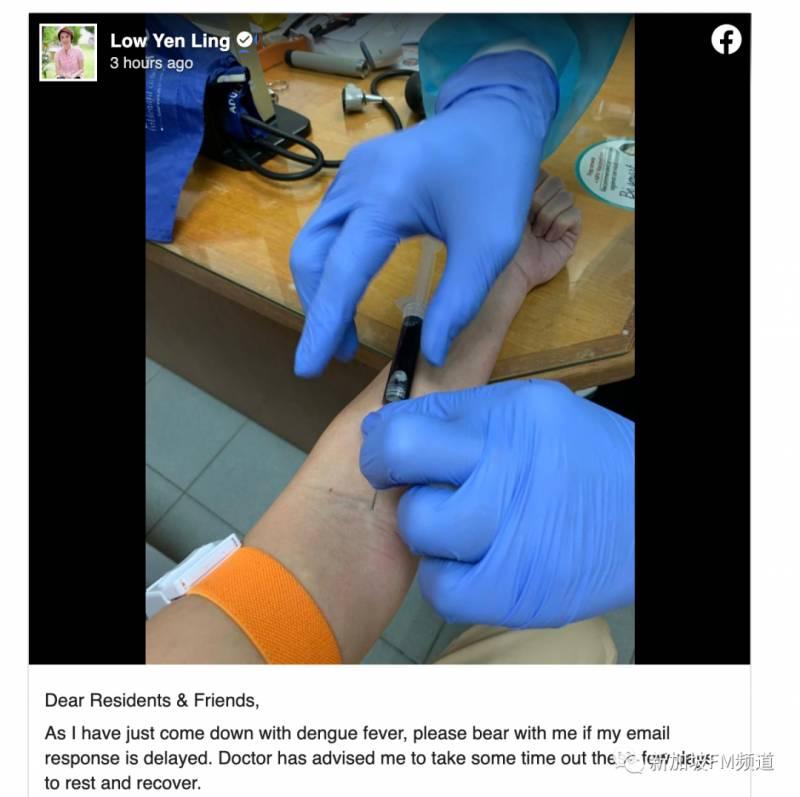 新加坡蔡厝港Chua Chu Kang GRC的国会议员Ms Low Yen Ling因登革热而病倒,随着新加坡进入该病的旺季,她成为最近几天患病的数百人之一。