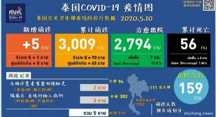 昨日新增的5例中,有3例是境外输入,自5月以来,泰国每天报告的新增病例均为个位数。