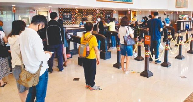 顾客入店前须扫描SafeEntry QR码和测量体温,使用点餐机时也必须保持安全距离。