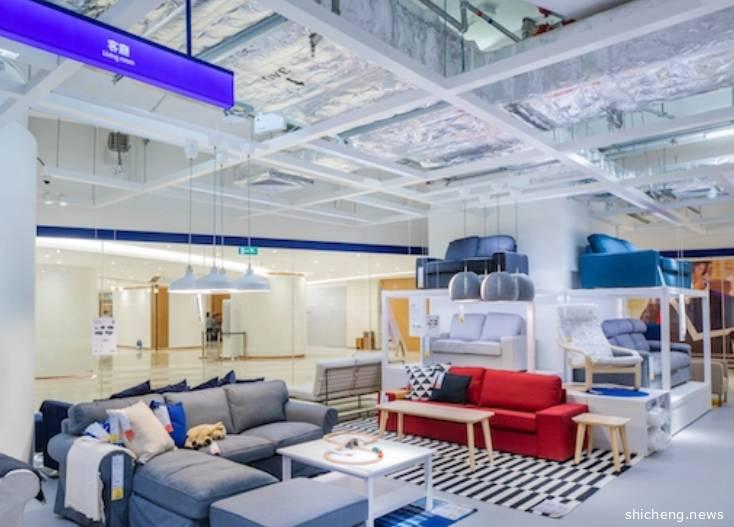 根据宜家官网发布的照片,商场上面的ikea蓝黄标志很醒目。