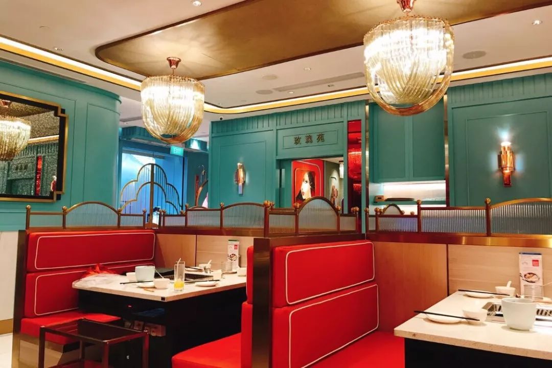 美滋锅每间店的主题色都不同,粉色,桃色,金粉色,而这间的主打色,是红、蓝和金,妥妥的奢华风。
