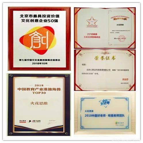 除了被家长、孩子们认可,火花思维的课程更是广受业界好评:获得“中国好教师明星团队”、“中国创新教育成长30强”等荣誉。