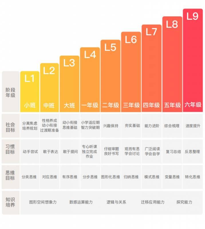 从幼儿园到小学全年级细分为L1——L9九阶课程体系,每个阶段精准匹配小学教材的教学内容。