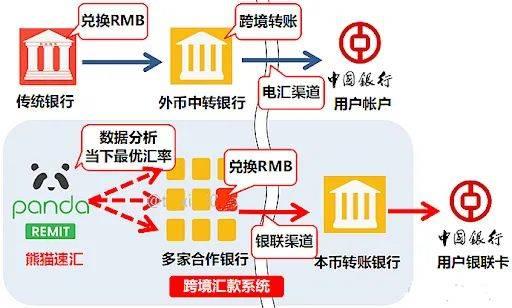 1)基因不同:如图可见,“熊猫速汇”并不是银行,而是整合了多家银行、金融资源的互联网公司。它提供的不只是一条汇款渠道,而是一套“跨境汇款系统”。