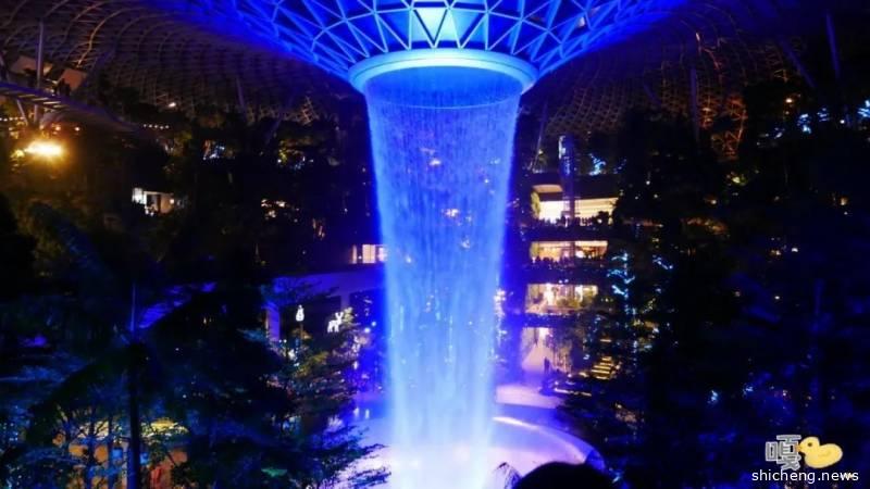 夜晚的樟宜机场更是不能错过!晚上8点!8点!就会有瀑布灯光音乐表演!而且是免费的,不用门票!我录了全程的视频: