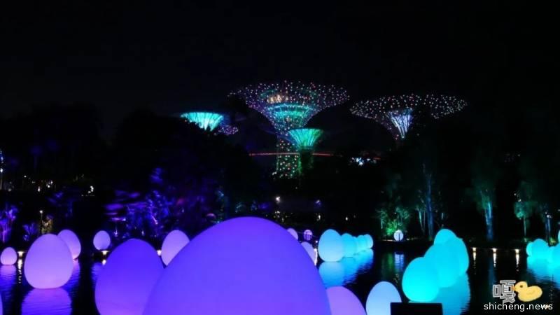 花园很大,最好先看好了地图再走~我去的时候已经傍晚了,夜色降临,夜晚擎天树会亮起绚烂的灯光。晚上8点会有灯光秀表演,但是,这个灯光秀表演和樟宜机场的灯光秀真的不是一个等级的,我和小伙伴看了一会儿就回旅舍休息了。