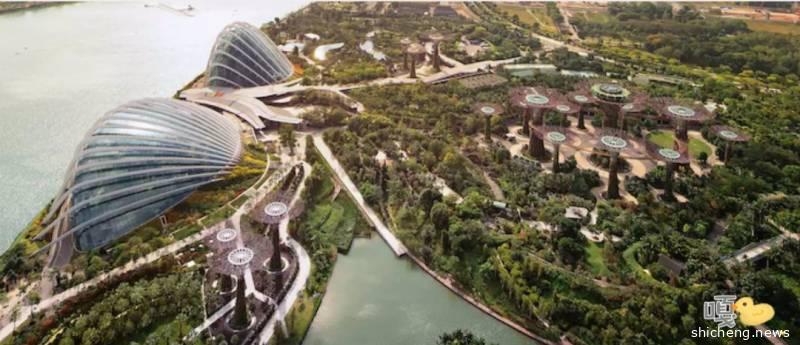 去了滨海堤坝后就可以直接走到滨海湾花园。滨海湾花园被誉为新加坡最美的城市园林杰作。高耸入云的擎天树丛,各种郁郁葱葱的植物,是个很适合散步的地方。
