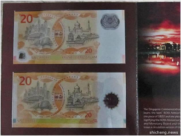 而在此协议下,2007年6月27日,为了庆祝新加坡与文莱之间的货币等值互换协议(Currency Interchangeability Agreement)40周年,新加坡与文莱共同发行正面不同样式而反面相同样式面额20元的塑胶纪念钞。
