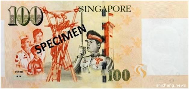 而钞票背面则向八位曾对新加坡社会做出显著贡献的代表人物致敬,八人的肖像底下流淌著新加坡河,河水从右边淳朴的码头流到左边变成繁华的市区高楼大厦,象征着新加坡过去200年从渔村、码头不断发展成现在先进的商业与金融枢纽。