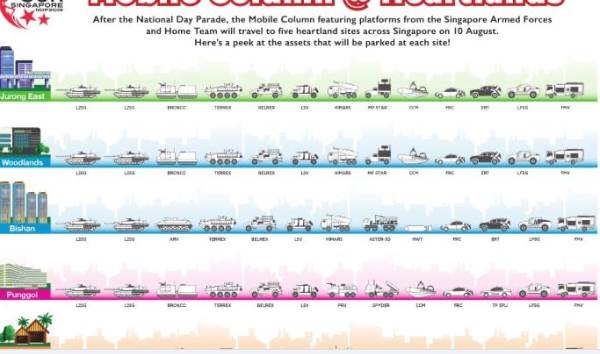 之后,机动队伍将在傍晚6点45分抵达碧山、芽笼士乃、裕廊东、榜鹅和兀兰五个邻里社区,并停放让公众有机会能近距离一睹它们的风采。