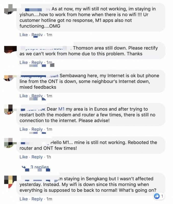 M1脸书上也有超过900人留言,因为疫情的关系许多人都靠网络办公,希望公司能尽早解决问题。