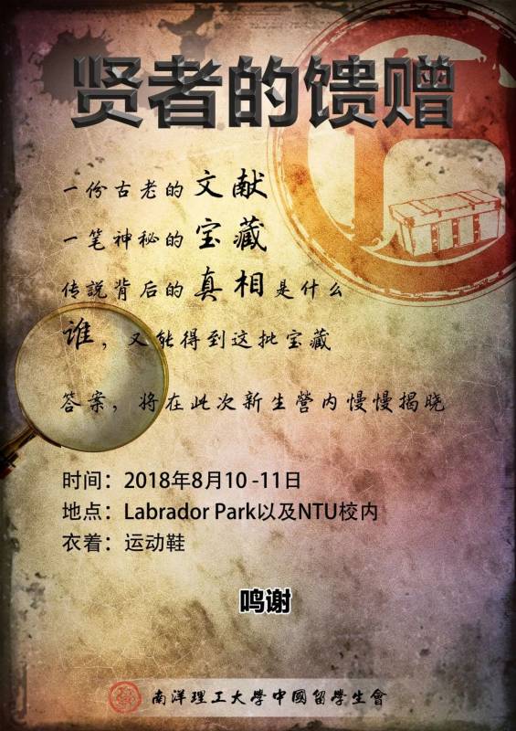 注:本次新生营《南洋之争》由南洋理工大学中国留学生会组织和举办,最终解释权归其所有。