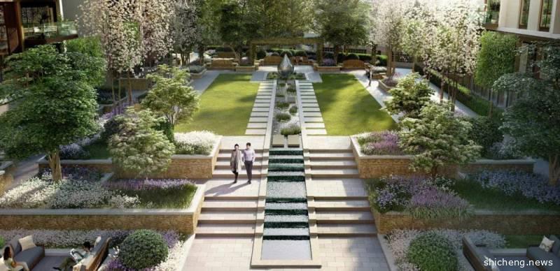 区域内50多个不同品种的6500棵树木分散种植,在清风的吹拂下,树枝低垂,随风摇曳。瀑布水流四溅,打在岩石上,汇成溪流,从桥下流淌,闪闪发光……体验摩登城市中的极致自然享受。
