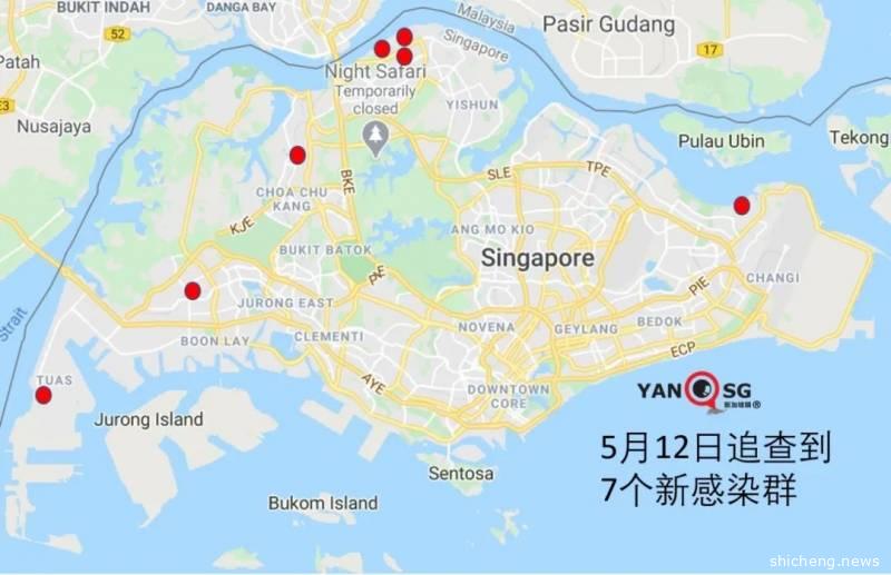5月12日,新加坡追查到7个新感染群,主要在工业区: