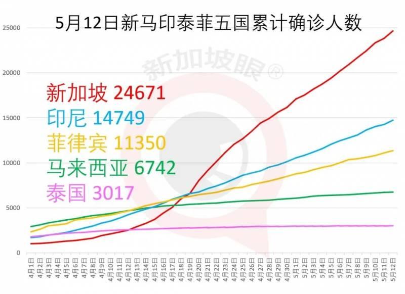 5月12日,印尼累计确诊14749例,菲律宾为11350例,马来西亚为6742例,泰国为3017例。