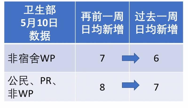 卫生部表示,过去一周,非宿舍WP日均新增6例,比再前一周的日均7例有所减缓。