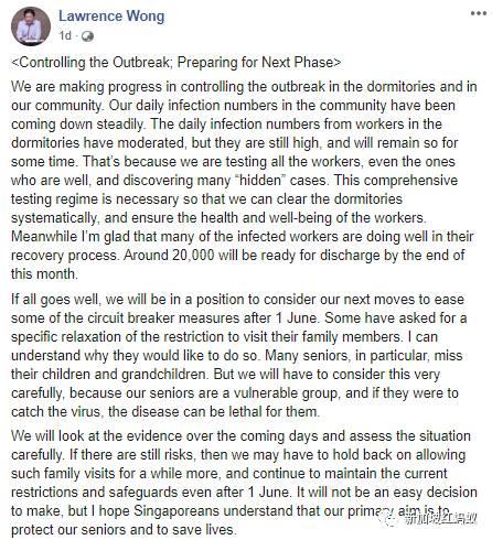 新加坡截至今日的累计确诊病例为2万5346,当中有1万9479人目前在社区隔离设施接受护理。若本月底能有2万名客工出院,那确实是个好消息。