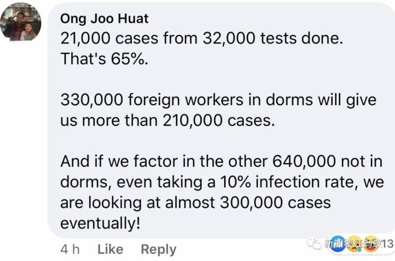 该网民指出,在检测了3万2000名客工后,大约有2万1000人确诊,“中病率”是65%。