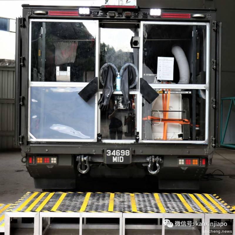 (图源:新加坡国防部)目前已完成改装的救护车并投入运作的有一台,6月底前,军方会再改装一部多功能的军用车,以及可同时检测出三人的20英尺长货柜。移动式的检测站的灵活性质,方便采集样本团队可在几天内到不同地点进行采集样本工作。