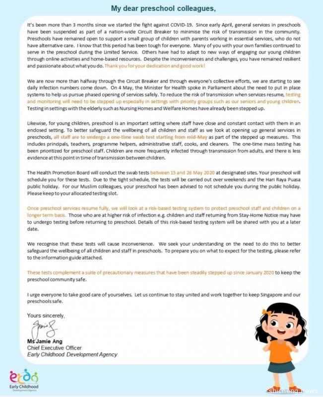 这是根据儿童早期发展机构(ECDA)向新加坡幼儿园工作人员发出的通知。