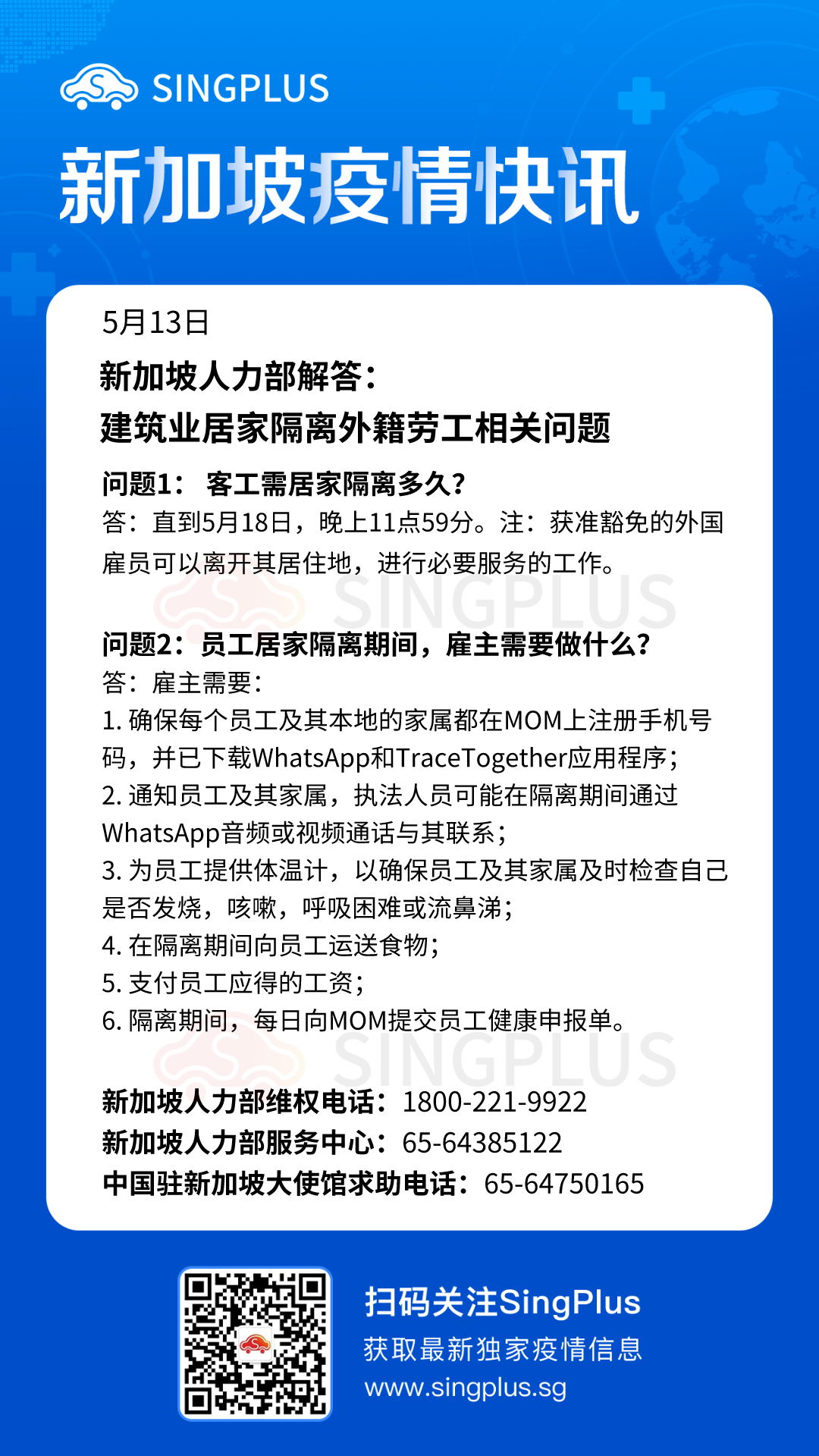 新加坡建筑业WP、SP准证持有者,居家隔离十四问