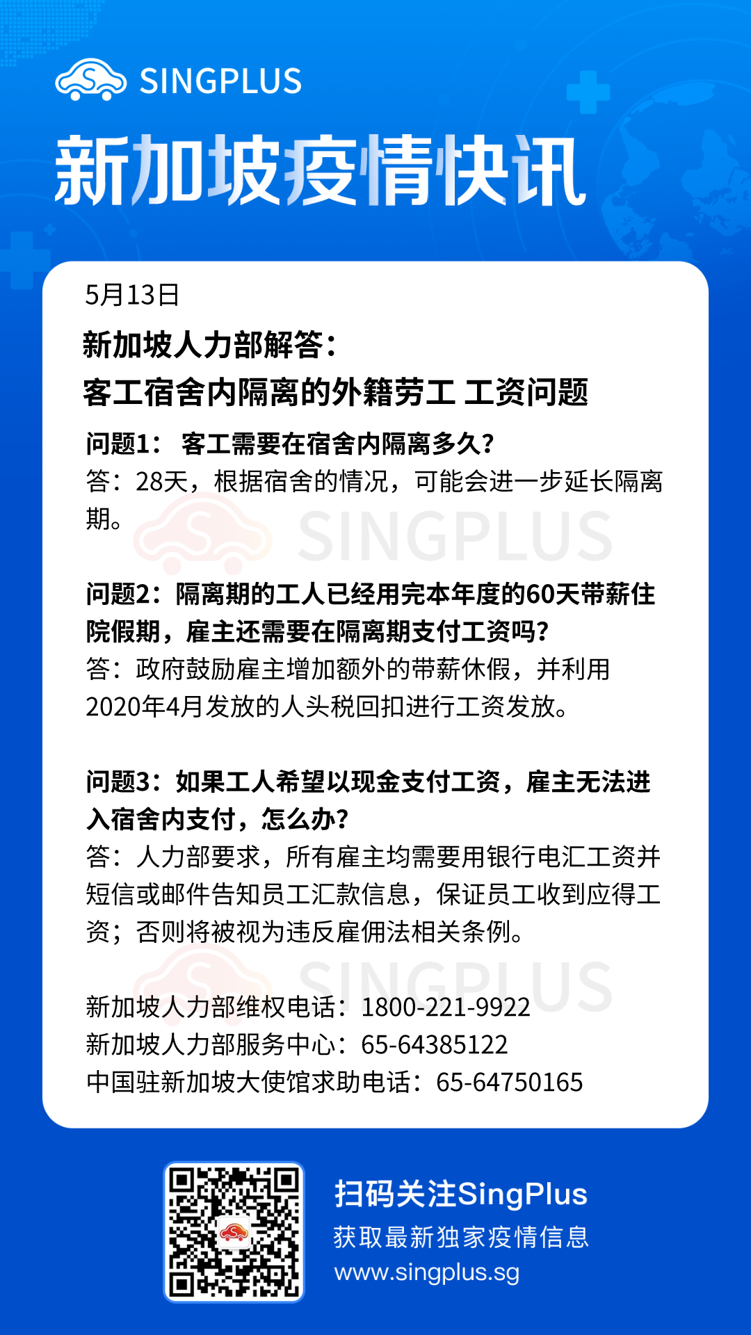 Q11“MOM会允许雇主将外籍雇员的工资降低到各自的工资标准以下吗?”答:是的。MOM对于将某些EP和SP持有者(在封城期间无法工作的人)的薪水暂时调整为低于相应的工资标准之下的行为表示理解,但仍然提倡雇主公平、合理地对待外国雇员。Q12“如果员工的MOM特别准证(Special Pass)到期,该怎么办?”答:对于2020年4月7日至2020年6月1日之间到期的MOM特别准证,其停留时间将延长28天。特别准证持有者会收到简讯通知,不需要到MOM服务中心申请。