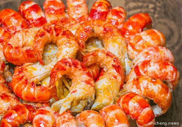 虾肉肥得流油,蘸点酱汁更是入味十足!