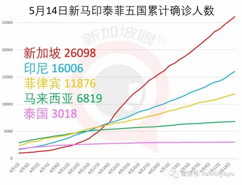 5月14日,印尼累计确诊16006例,菲律宾为11876例,马来西亚为6819例,泰国为3018例。