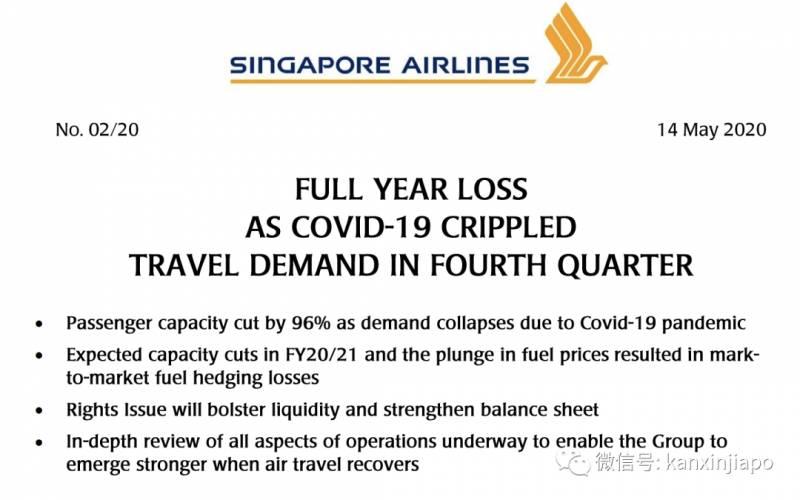 新航说,由于本季度末燃油价格暴跌,因此新航也遭受了巨大的燃油亏损。 由于新冠大流行以及沙特阿拉伯与俄罗斯之间的价格战,全球对石油的需求下降,而且燃油价格历史上首次跌至负数。