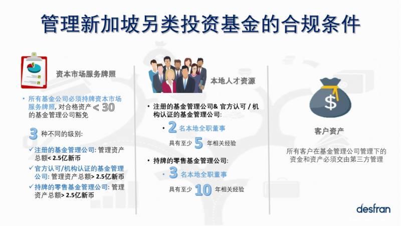 根据新加坡金融管理局规定,在新加坡管理基金的任何个人或企业实体,无论其财务状况如何,都必须持有资本市场服务牌照。