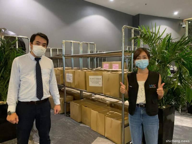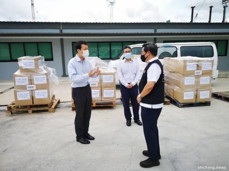 中资企业(新加坡)协会会长程军先生、秘书长付晓辉先生和新加坡外籍劳工中心主席杨木光先生出席了物资交接仪式。