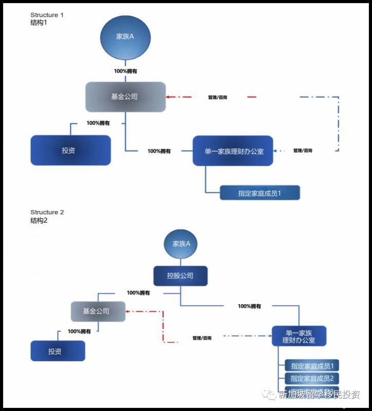 新加坡家族办公室的架构就是主申请人在新加坡设立由自己或家庭成员一起成立的两家公司,一个是基金公司,一个是家族办公室。