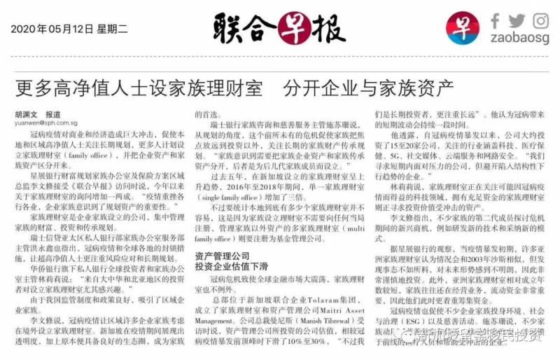 新加坡是亚洲最热门的家族办公室设立之地,众多指企业在最近疫情期间深刻体会到了资产配置的重要性,所以很多人把企业资产和个人资产或者家族资产进行切割,