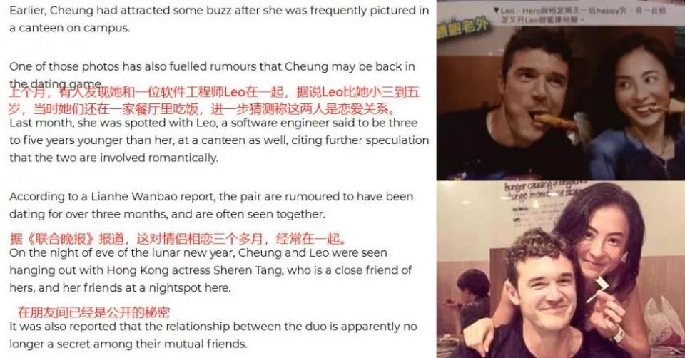 Leo在新加坡工作,可以说是青年才俊。张柏芝她在怀孕前后多次前往新加坡,即便是产后流言蜚语、恶评不断,依然没能阻止张柏芝与他见面。
