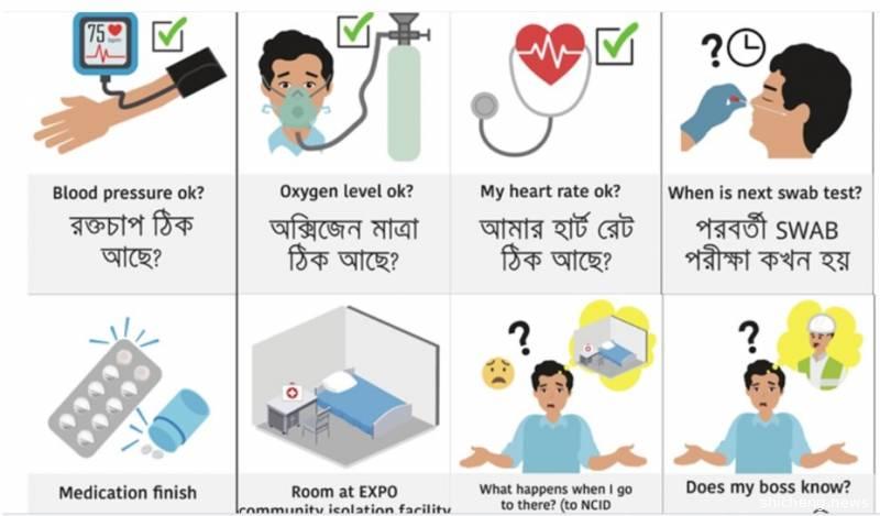 另外,也有人设立VisualAid网站、设计插图卡,以协助前线医护人员与孟加拉籍客工沟通。