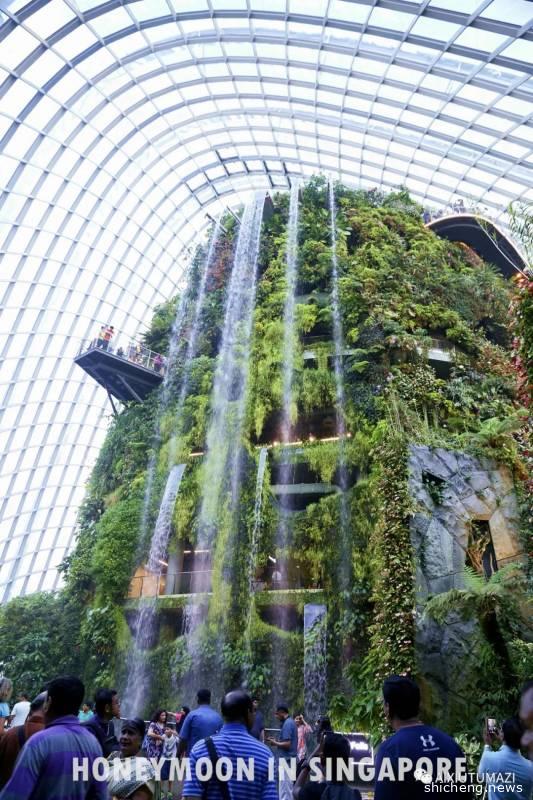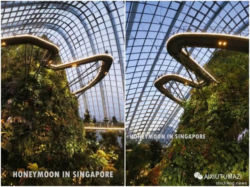 吃饱饱以后出发去新加坡滨海湾花园,滨海湾花园可以说是新加坡的中心区域,就在金沙酒店旁边,这是一个非常特别的设计,从外面看是两个比较现代的建筑,里面其实是两个大型的室内花园—云雾林和花穹,这个跟新加坡花园城市的理念相一致,里面是把各种植物用特殊的设计形式进行展示。
