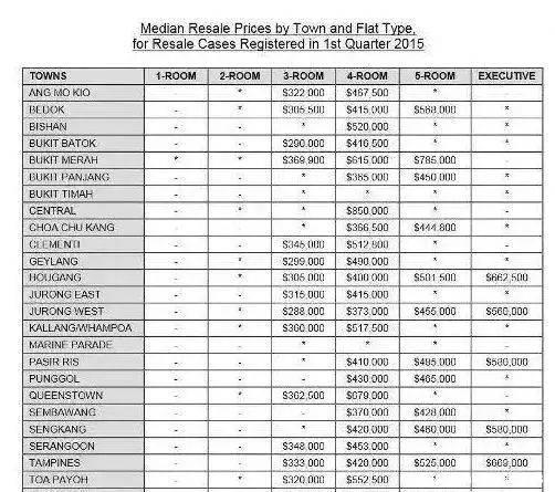 接下来讲讲新加坡组屋的价格。下图显示的是2015年第一季度新加坡的组屋价格。我们以4-ROOM(相当于国内的三室一厅,建筑面积约120平米左右)作为例子来说明。市中心地区(Central)的价格中位数为85万新币(约合人民币420万)。二环以内(ToaPayoh)的组屋价格大约为55万新币(约合人民币270万)。大家可以和自己所在的城市房价比较一下。