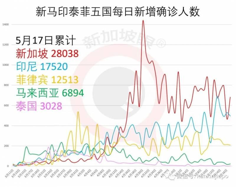 5月17日,印尼累计确诊17520例(+495),菲律宾为12513例(+208),马来西亚为6894例(+22),泰国累计3028例(+3)。泰国新增的3例皆为归国留学生输入病例。