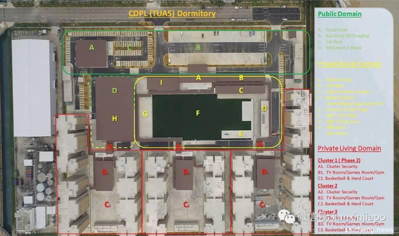 CDPL大士宿舍位于大士南15街(Tuas South Street 15)6号。根据公司网站信息,一共有八栋宿舍楼,可住12800人。