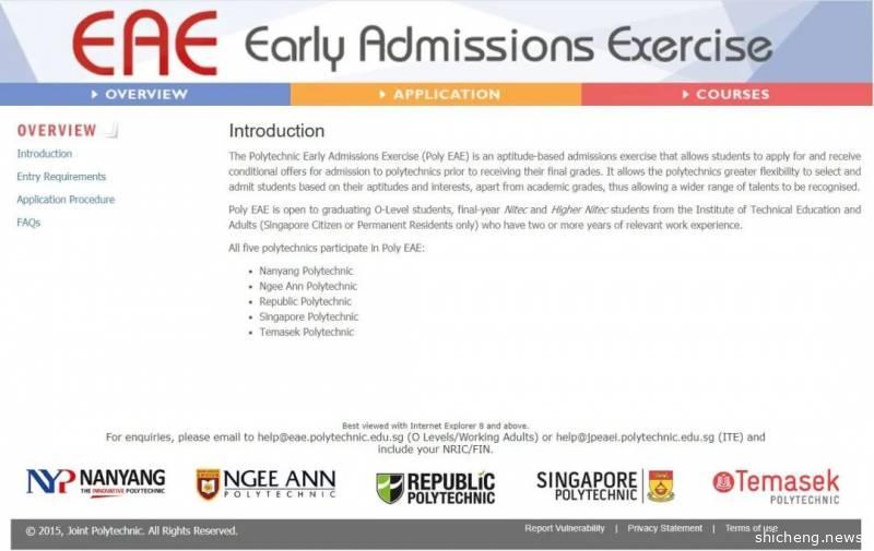 今天,新加坡教育部发文告指出,理工学院的提前招生活动 (Early Admissions Exercise,简称EAE) 从下个月起逐步开放申请。