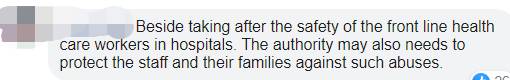 “除了照顾好一线医护人员的安危,当局还要考虑到保护他们的家人免受这种虐待。”