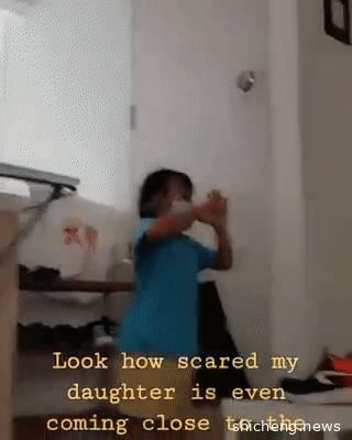 五岁的小女孩没哭没闹,只是用小手护住双眼,快步走向家门,令人心疼!