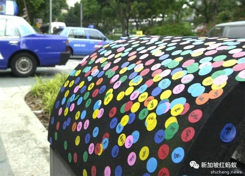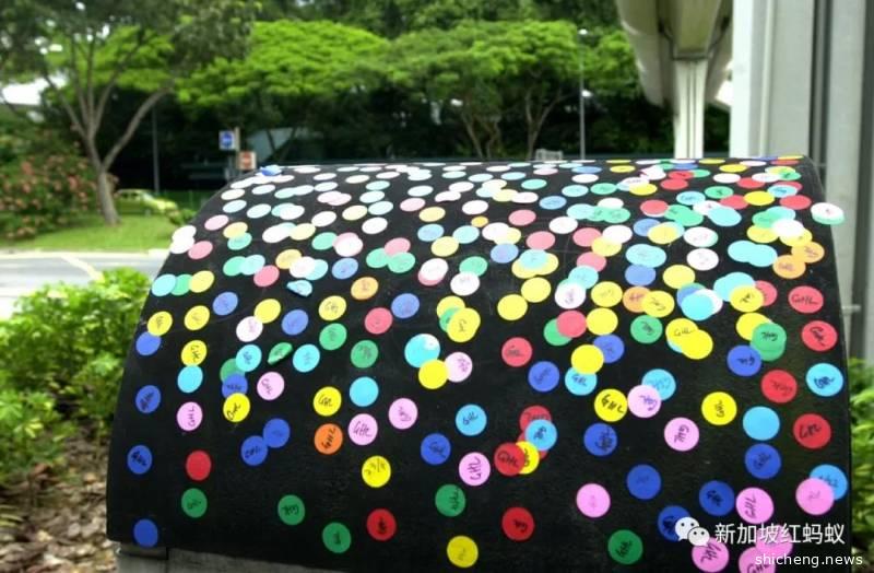 明明只需将贴纸撕下后扔进垃圾桶里,举手之劳的事,但是收到贴纸的探访者似乎不知道垃圾桶的正确用途,就这样你贴一个我贴一个的打造出波点垃圾桶。
