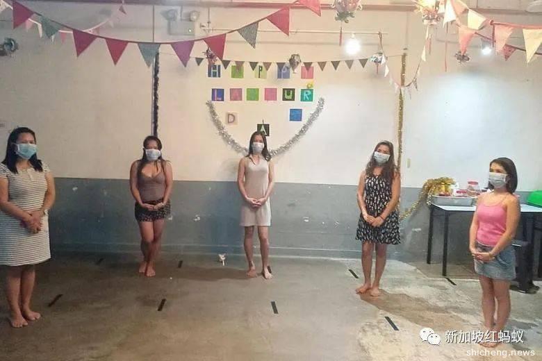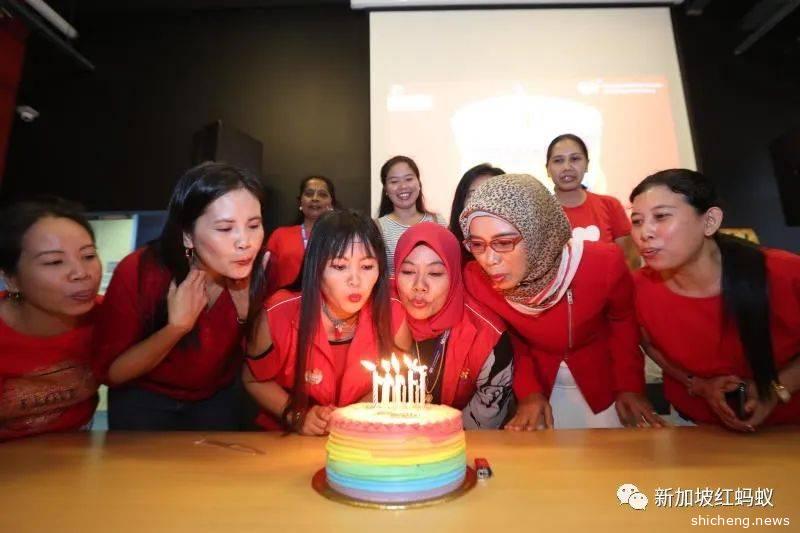 2019年8月18日,在外籍女佣援助与技能培训协会举办的新加坡开埠200周年派对上,为8月份生日的女佣们庆祝生日。(海峡时报)