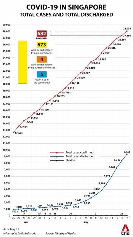 截止5月17日,新加坡已经有累计28038人感染。不过同时当局表示,现在检测速度已经加快,全岛30万客工都将接受新冠肺炎检测,月底还会有约2万名客工治愈出院。