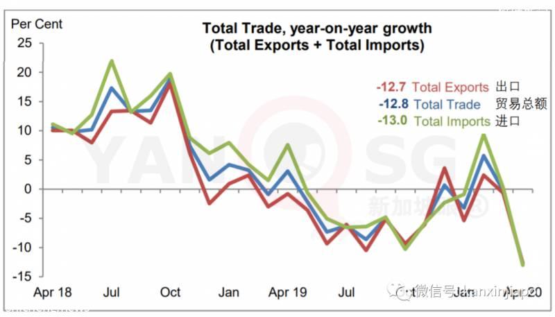 5月18日,新加坡企业发展局公布数据显示,新加坡4月份总贸易额同比下降12.8%,出口下降12.7%,进口下降13.0%