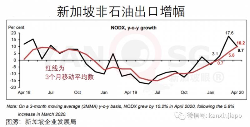 新加坡非石油出口则连续三个月攀升,4月份上涨9.7%,非电子出口则增长12.8%。